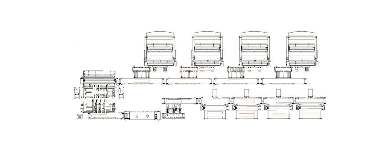 此機(jī)型結(jié)構(gòu)適用于布匹打卷后的連續(xù)無(wú)人化包裝使用,打卷后的布不分先后可以無(wú)秩序進(jìn)入主機(jī)包裝,經(jīng)過(guò)感應(yīng)器檢測(cè)布匹信號(hào),通過(guò)PLC控制布匹走向,包裝好的布通過(guò)爬高機(jī)裝置進(jìn)入高位輸送帶,再經(jīng)過(guò)高位輸送帶直接落到和定型機(jī)相對(duì)應(yīng)的指定布車,真正實(shí)現(xiàn)無(wú)人化包裝,無(wú)人化輸送,達(dá)到自動(dòng)化控制包裝流水線的目的,為紡織企業(yè)節(jié)省人力,提高生產(chǎn)效率
